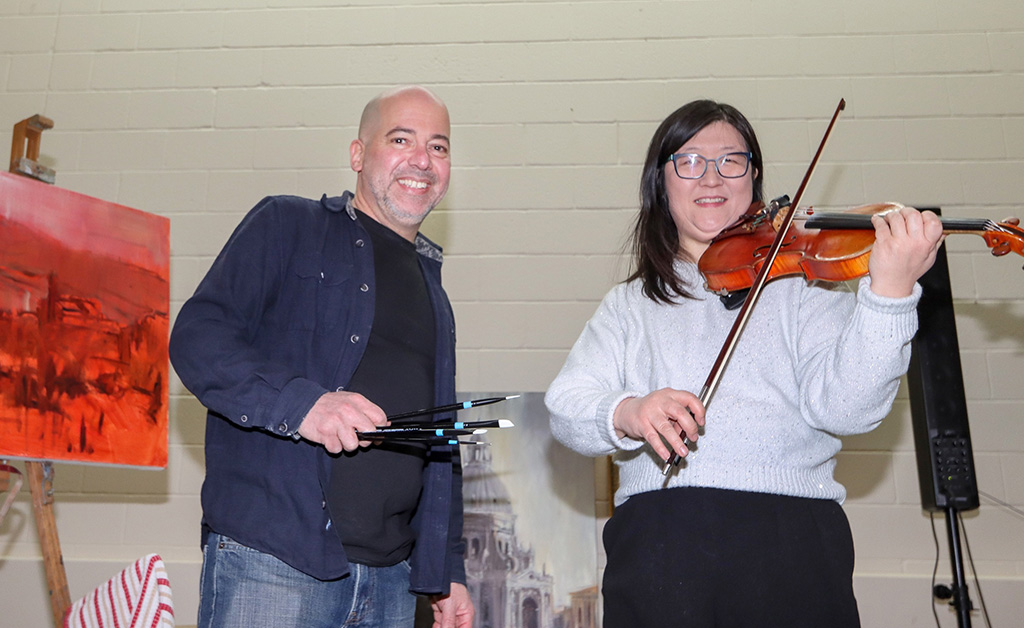 Attendees were also captivated by a mesmerizing performance from professional violinist Min-Hi Choi and a live painting demonstration by renowned local artist Pierre Giroux, whose finished masterpiece will be auctioned off to benefit the club’s charitable efforts.